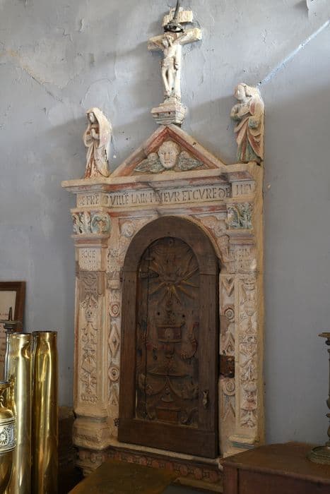 Tabernacle en pierre calcaire polychromée et en bois (porte).