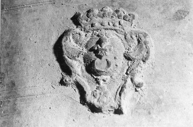 Inscription : J'ay été no (mm) ée Henriette par Henry Le Berseur, marq (ui) s de Fontenay, s (ei) g (neu) r et patron de cette p (arroi) sse, d'Emondeville et d'Azeville, premier ch (evalie) r de l'ordre roial et militaire de S (ain) t Louis, cy devant colonel d'infanterie et de cavalerie officier de gendarmerie, con (seill) er chambellan ord (inai) re du roy, grand bailly de Cotentin commandant à Cherbourg, cap (itai) ne g (ene) ral de la cote du Cotentin. Et benite par Gilles Giffard curé de ce lieu, cura lud (ovi) ci Petri le Rouge t (hesaura) rii 1760. I. B. Bolle m'a faite. Armoiries : blason d'azur à une fleur de lys d'or soutenue d'un croissant d'argent, qui est Le Berseur.