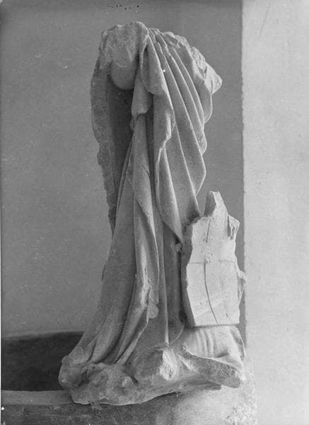 Groupe mutilé, en pierre calcaire présentant des traces de polychromie.