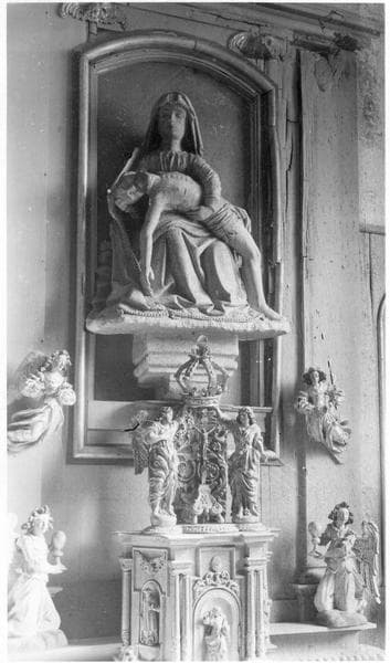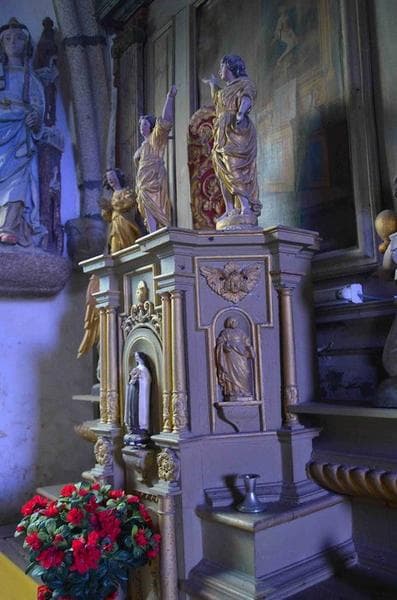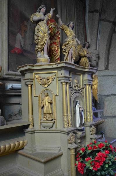 L'ensemble est constitué du tabernacle à exposition et du gradin orné de godrons. Le taberncale est orné de trois statuettes.