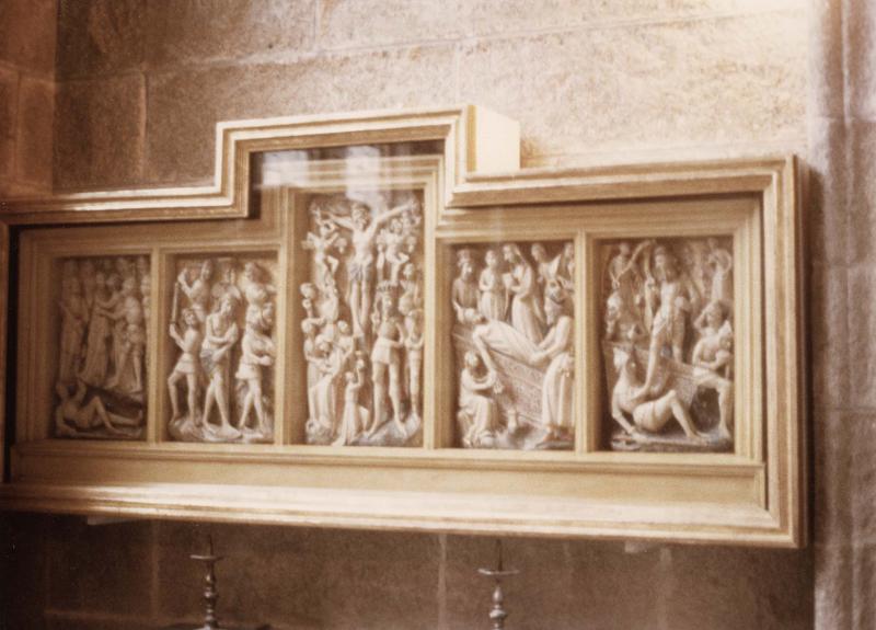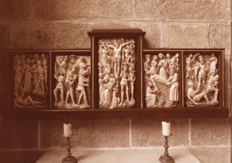 Ce retable présente cinq scènes de la Passion : le Baiser de Judas, la Flagellation, le Christ entre les deux Larrons, la Mise au tombeau, la Résurrection.