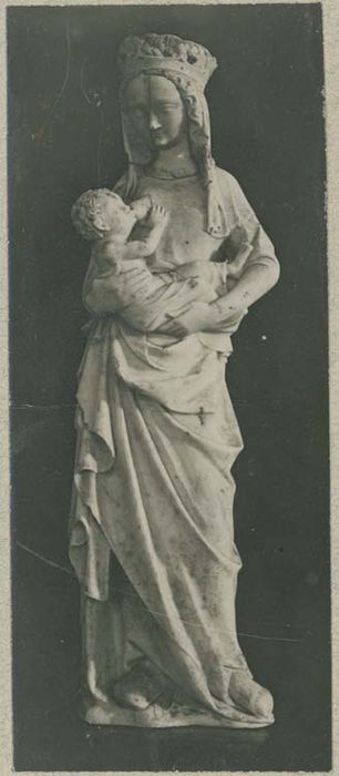Statue d'origine parisienne, présentant quelques caratéristiques du 13e siècle, ce qui laisserait penser que cette oeuvre est peut-être issue du rayonnement d'un modèle parisien antérieur. A rapprocher de la Vierge de Joigny (Yonne).