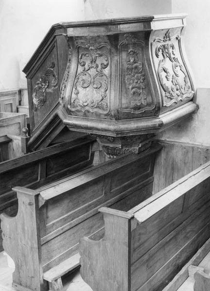 L'ensemble est constitué de la chaire à prêcher, de l'escalier, de la cuve décorée de volutes, du dosseret et de l'abat-voix sommé de volutes.