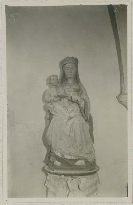 Cette statue en pierre calcaire présentant des traces de polychromie, est une ancienne Vierge à l'Enfant : l'Enfant manque. Les mains ont été refaites.