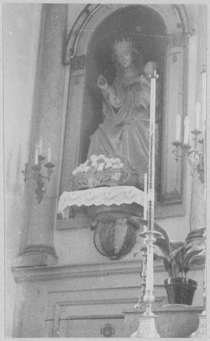 Cette statue, qui daterait de la 1ère moitié du 15e siècle, se trouvait autrefois dans une chapelle, peut-être au nord. Elle présente toutes les caractéristiques de l'art flamand.