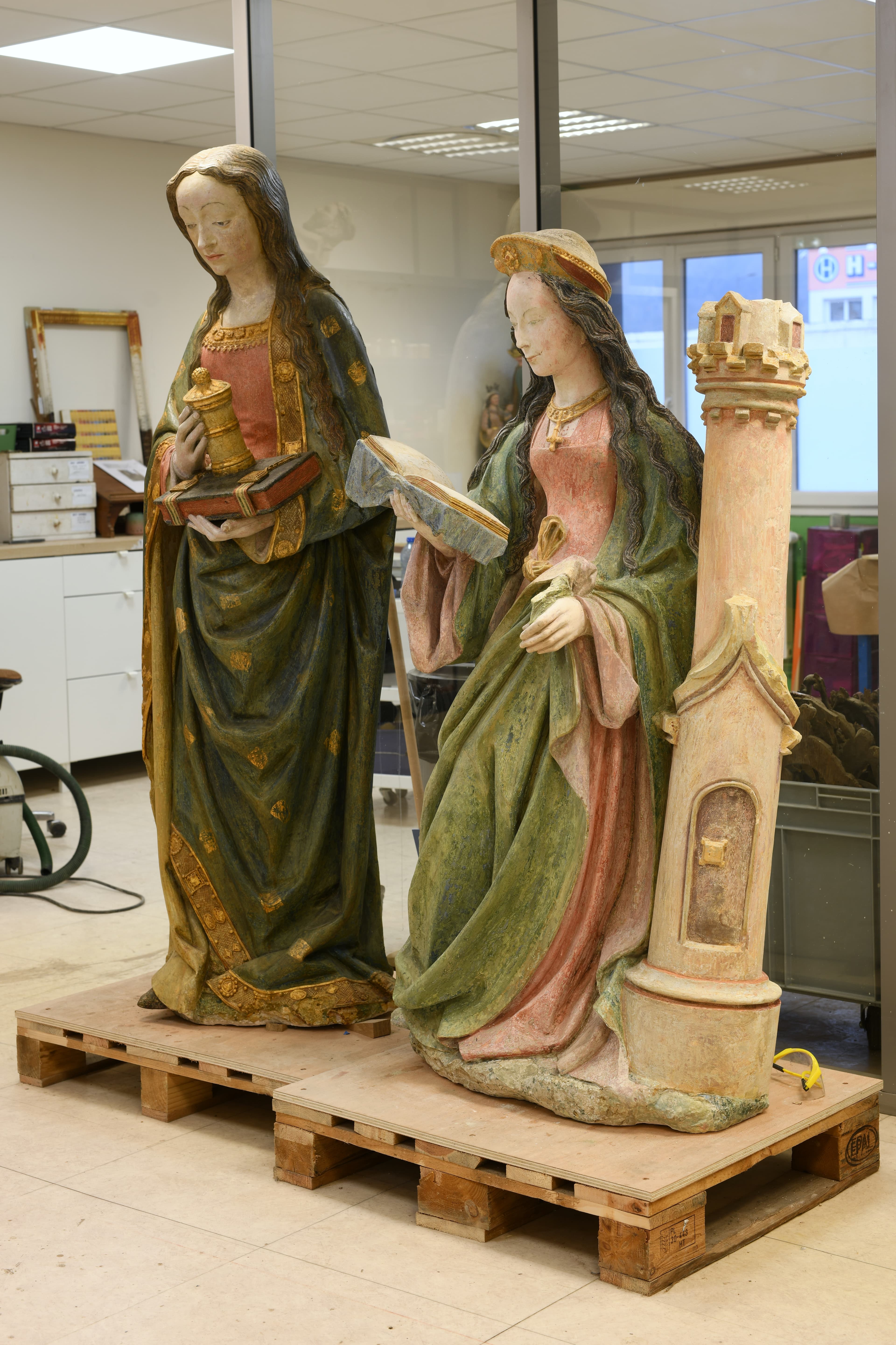 calcaire : taillé, peint (polychrome)