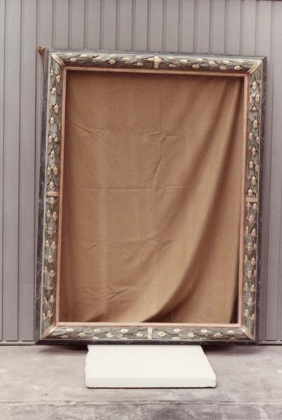 Le cadre, en bois polychromé sous badigeon, provient de l'ancien retable.