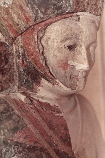 calcaire : décor en haut-relief, polychrome