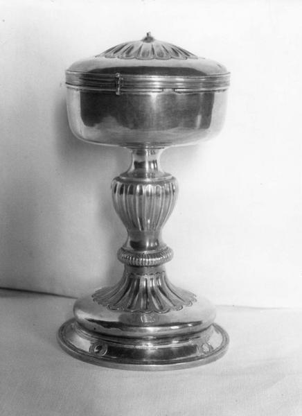 Ce ciboire possède un couvercle à baïonnette, dont la croix est manquante.