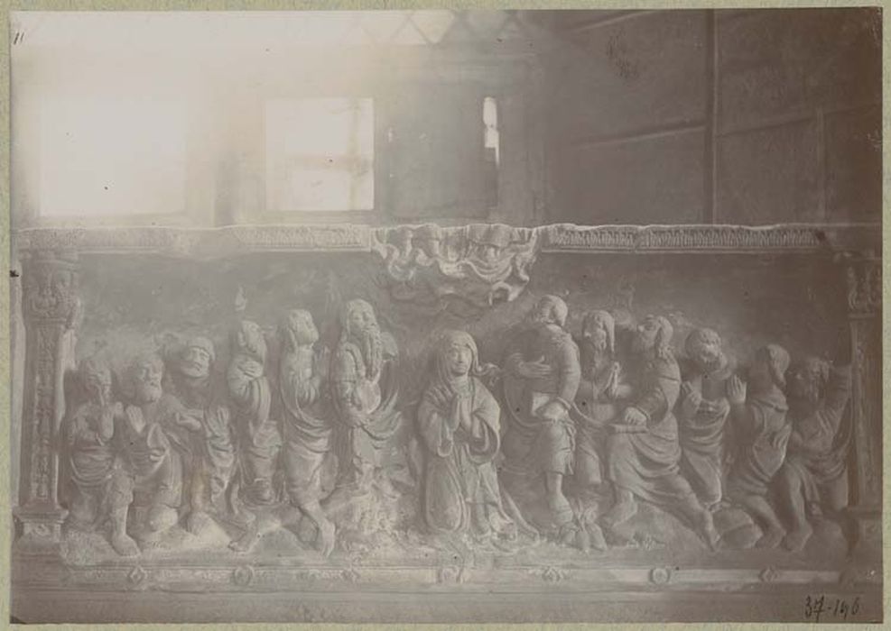 Retable en pierre de Caen, orné d'un bas-relief représentant l'Ascension, et encadré par des pilastres Renaissance. La partie supérieure est brisée.