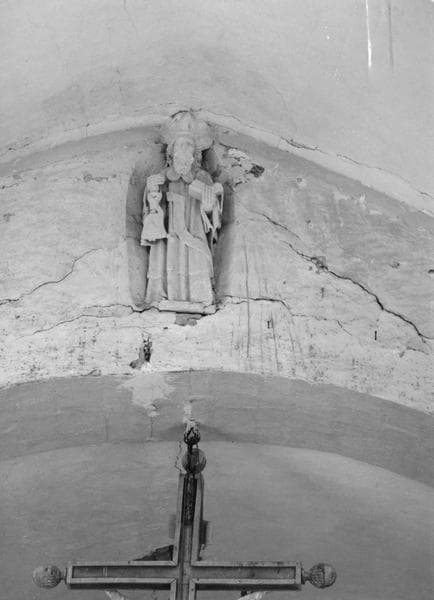 Statue en calcaire recouvert d'un épais badigeon.