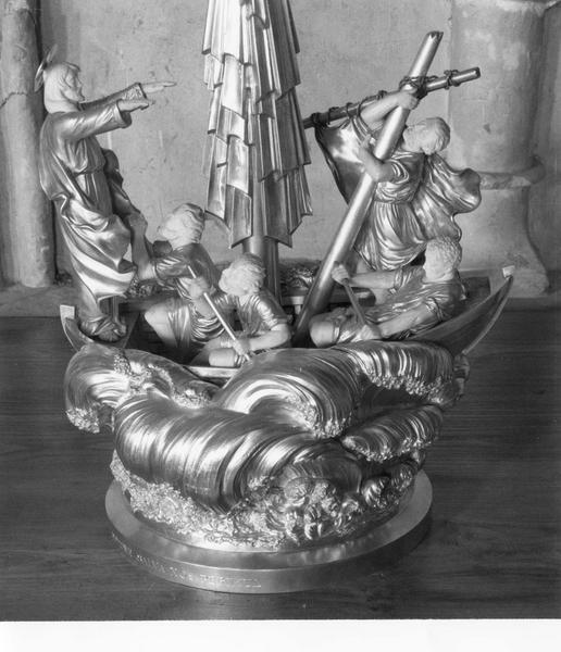 Grand ostensoir dont le pied représente le Christ apaisant la tempête. Les têtes, les bras et les jambes sont en ivoire.