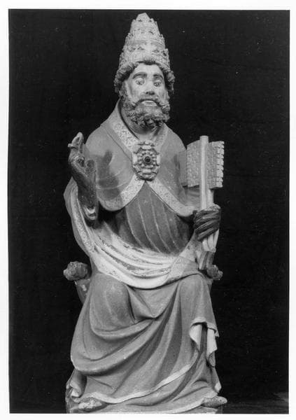 statue : Saint Pierre assis sur une chaise curule, en pape