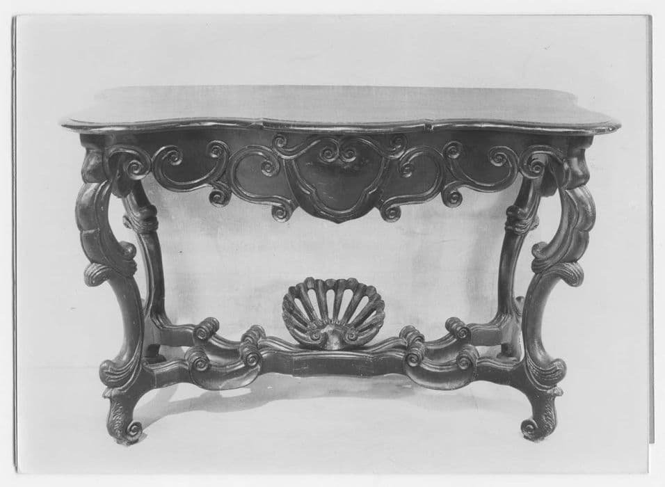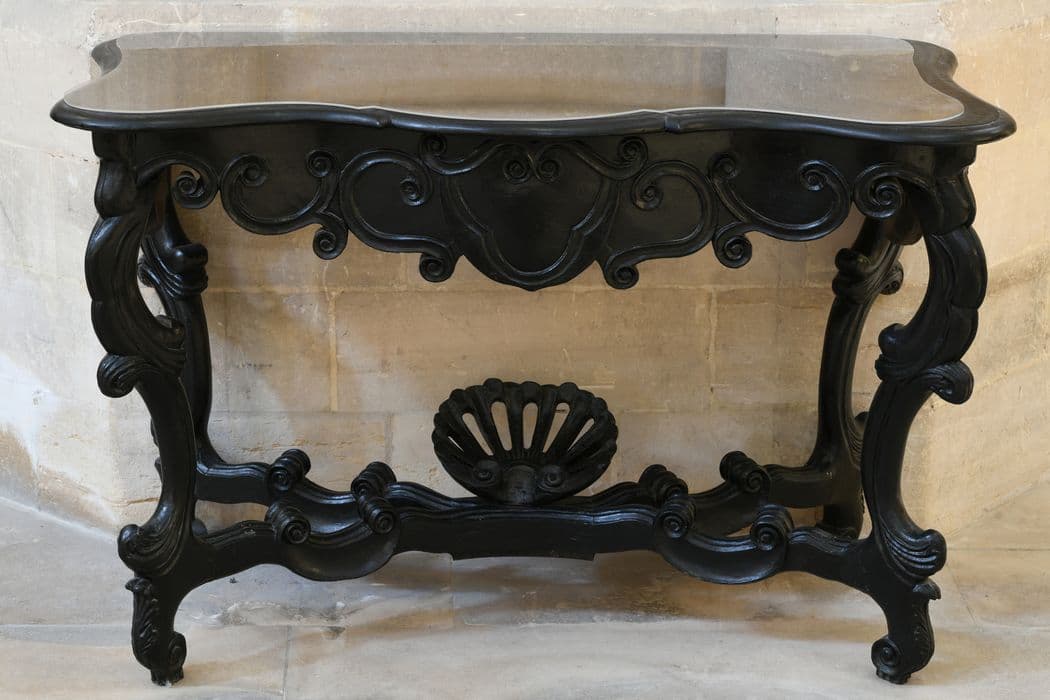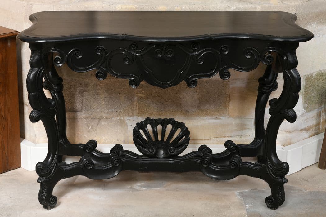 Paire de consoles sculptées de style 18e siècle, en bois teinté noir.