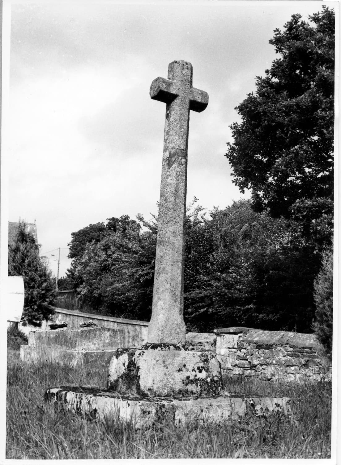 L'ancienne croix du cimetière, située dans la section ouest. Elle repose sur un emmarchement et un dé.