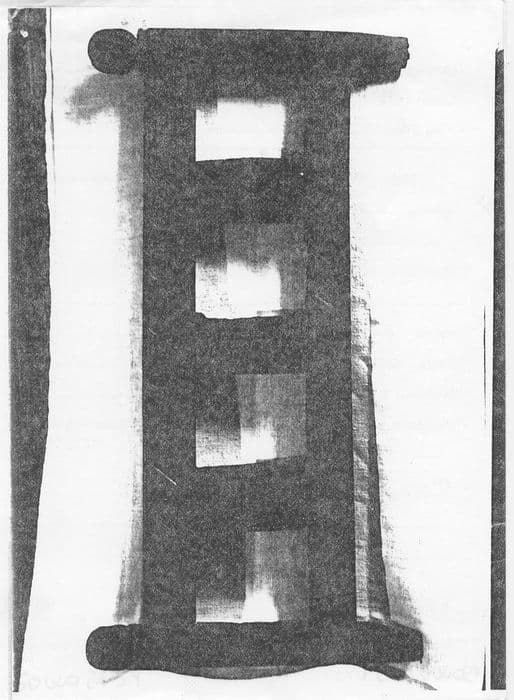 Elément en bois (tête ?) de lit d'enfant, à décor religieux.