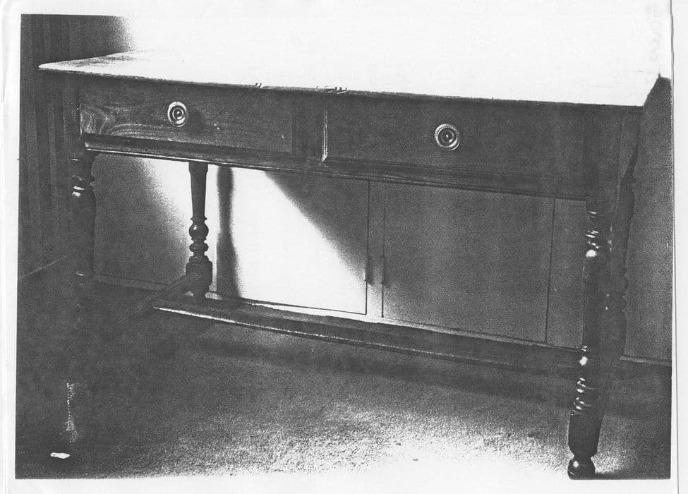 Table à deux tiroirs en bois de chêne, de style Louis XIII.