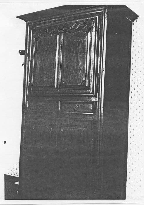 Jean-debout normand en bois de chêne mouluré et sculpté avec garnitures en fer.