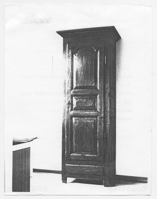 Jean-debout normand en bois de chêne mouluré et sculpté avec garnitures en fer.