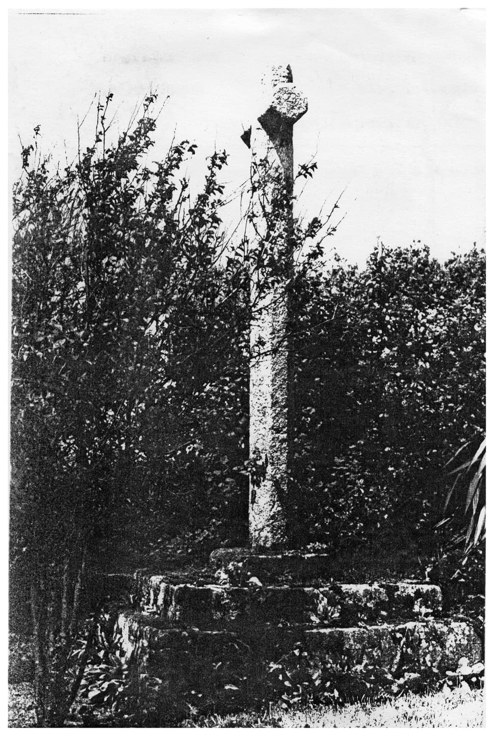 Deux emmarchements, dé, fût, croisillon de section octogonale.