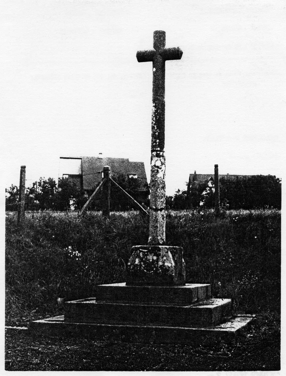 Trois emmarchements, dé avec les instruments de la Passion gravés dans un cercle (tenailles), fût en trois éléments (le premier est octogonal, les autres sont circulaires), croisillon de section circulaire.