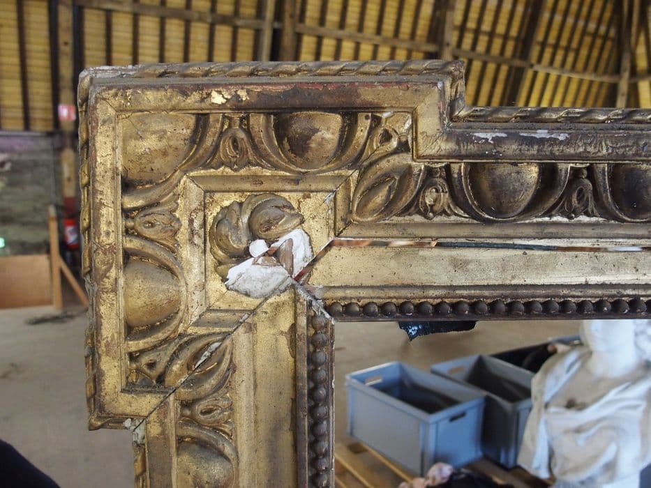 Huit miroirs pour les loges à salons avec cadres en bois doré ou en bois recouvert de velours rouge. Deux miroirs pour le foyer des artistes, avec encadrement en sapin doré et sculpté. Sculptures du fronton représentant une couronne de lauriers, un carquois et ses flèches, une torche (déposés dans le grenier).