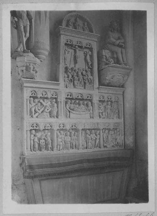 Retable : huit scènes de la vie du Christ, bas-reliefs.
