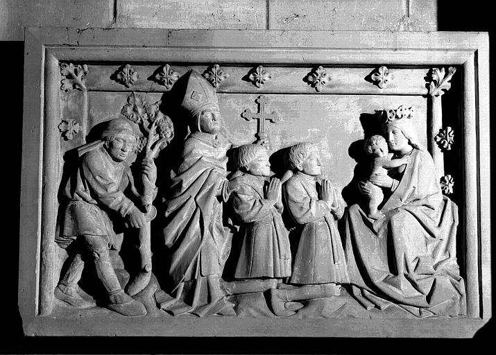 POP | Plateforme ouverte du patrimoinebas-relief ex-voto : Vierge de Pitié et deux donateurs présentés par saint Jean et Saint Pierre