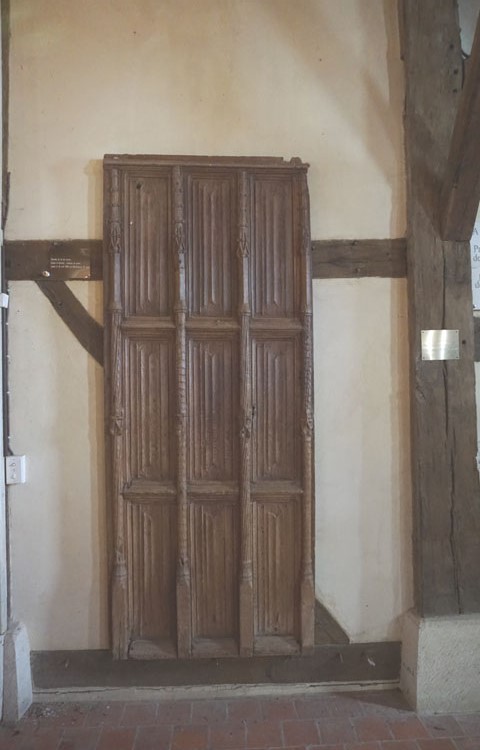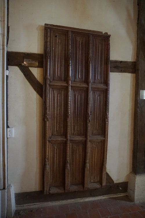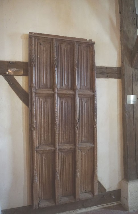 Lambris. Ce lambris est formé de trois étages de panneaux à plis séparés par des pinacles. La disposition est des plus intéressantes bien que la sculpture soit très arondie et les reliefs très atténués. Un lambris comme celui-ci devait couvrir tous les murs de l'église entièrement construite en bois.