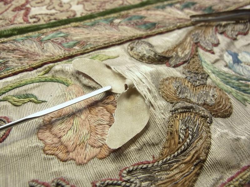 Ornement brodé : chape, chasuble, dalmatique et tunique, or et soie.