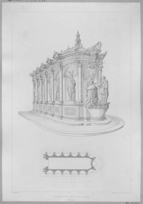 Oeuvre exécutée entre 1523 et 1537 (archevêque Robert de Lenoncourt, abbé de Saint-Remy). Détruite à la Révolution. Restauration en 1848 (architecte Brunette, sous l'épiscopat du cardinal Gousset).