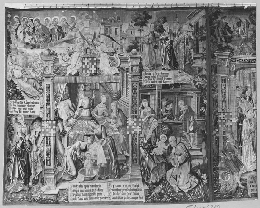 pièce murale de la tenture de la vie de saint Remy : la Naissance de saint Remy