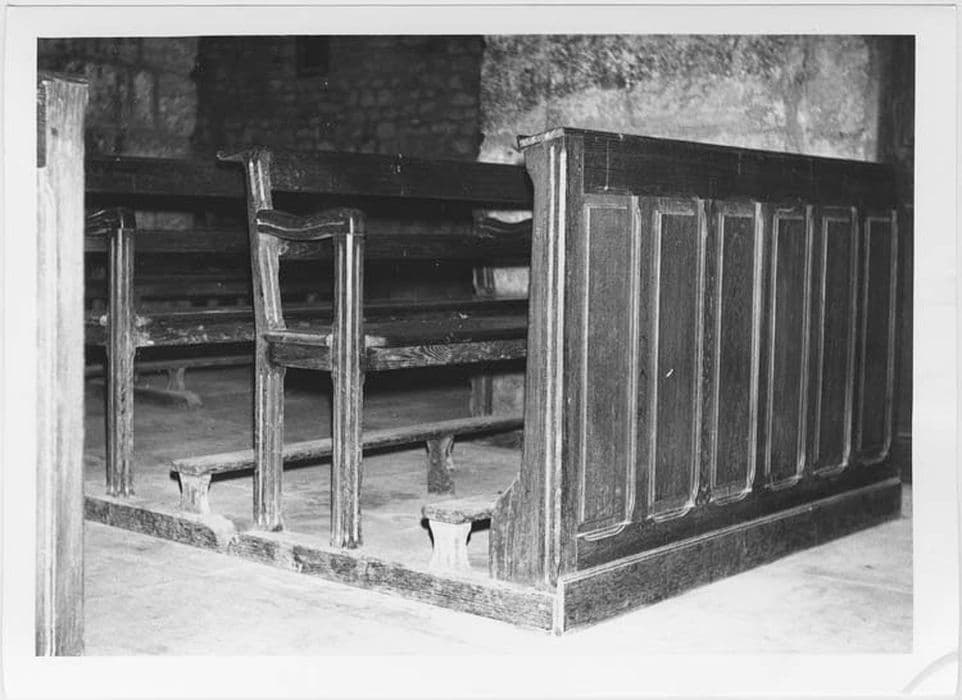 Bancs à haut dossier pour trois personnes et tous les autres bancs (vingt-et-un bancs).
