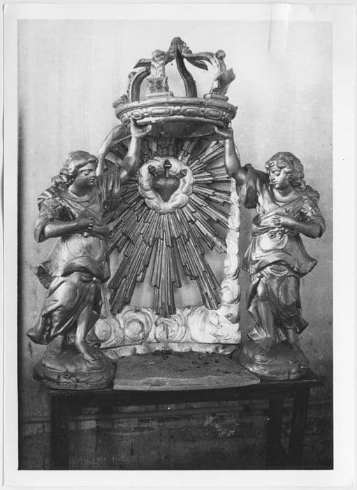 Exposition formée de deux anges sur socles indépendants du socle de la partie centrale de l'objet.