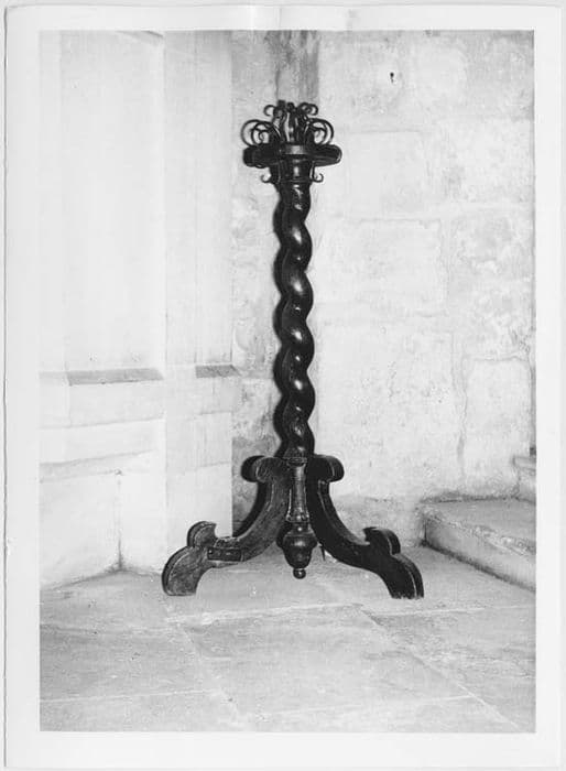 Chandelier reposant sur trois pieds à tige torse.