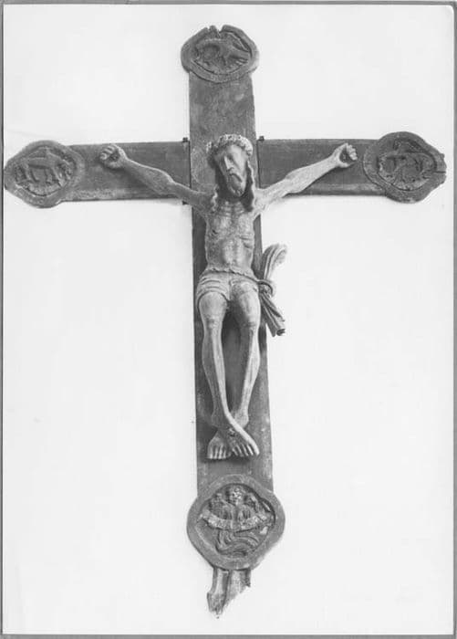 POP | Plateforme ouverte du patrimoinestatue : Christ en croix avec les symboles des évangélistes