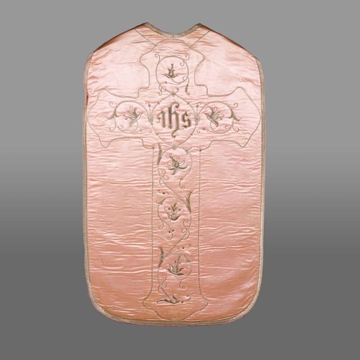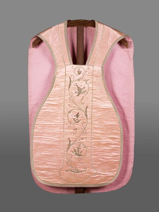 chasuble, étole, manipule, voile de calice et bourse de corporal (ornement rose)