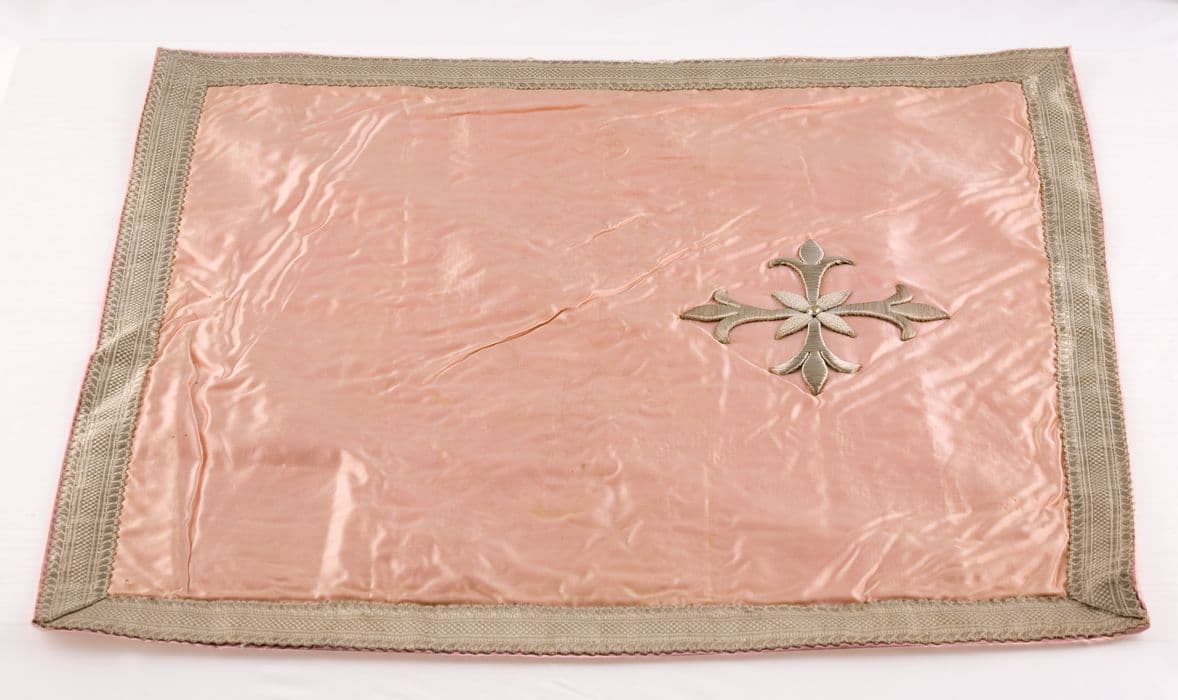 ornement liturgique catholique ; chasuble ; étole de clerc ; manipule ; voile de calice ; bourse de corporal