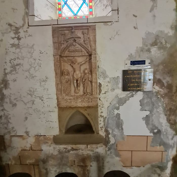 haut-relief : Christ en croix entre la Vierge et saint Jean (Le)
