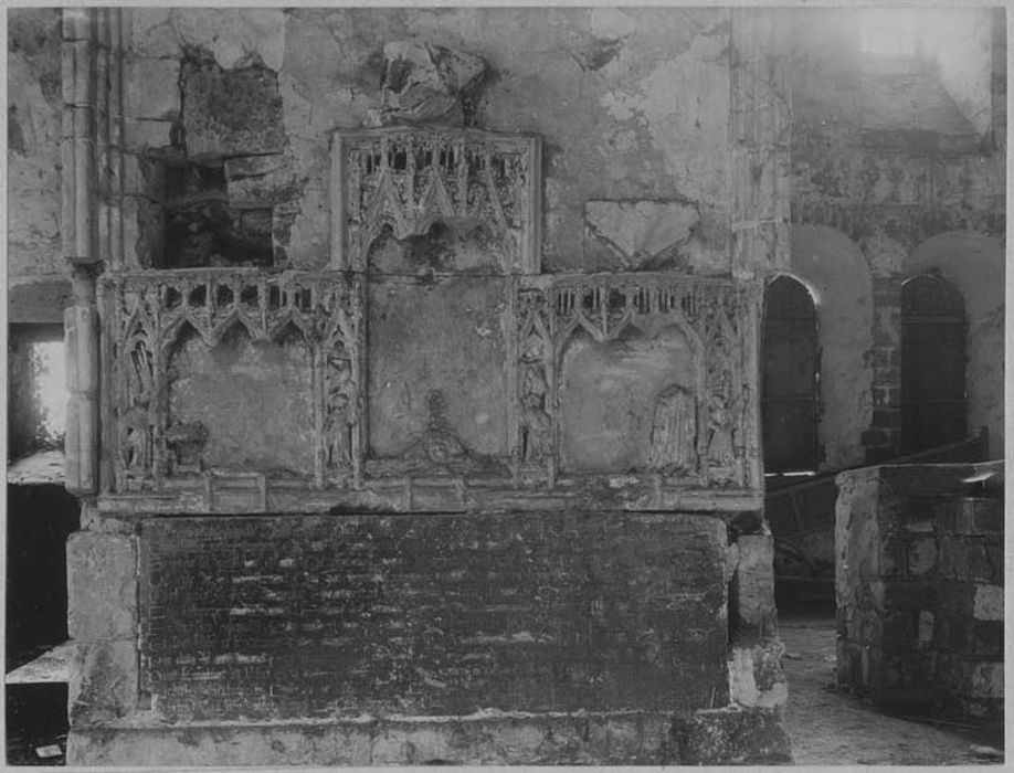 Restes de monument funéraire transférés à Laval en 1915 de l'église de l'ancienne abbaye de Clermont à Olivet.