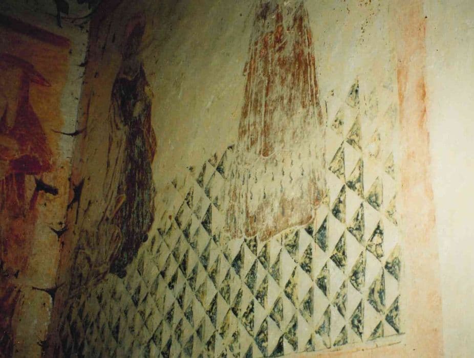 peintures monumentales : Blasons et saint Michel, Messe de saint Grégoire, Saint Christophe, Saint Cénéré