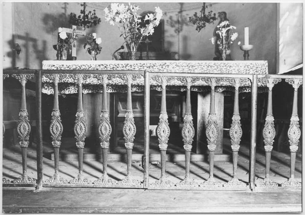 clôture de choeur, clôture des fonts baptismaux et garde-corps de la tribune