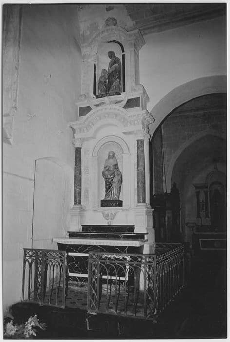 autel de Sainte-Anne avec son retable, un groupe sculpté : Saint Joachim et la Vierge, son degré d'autel et sa clôture de chapelle