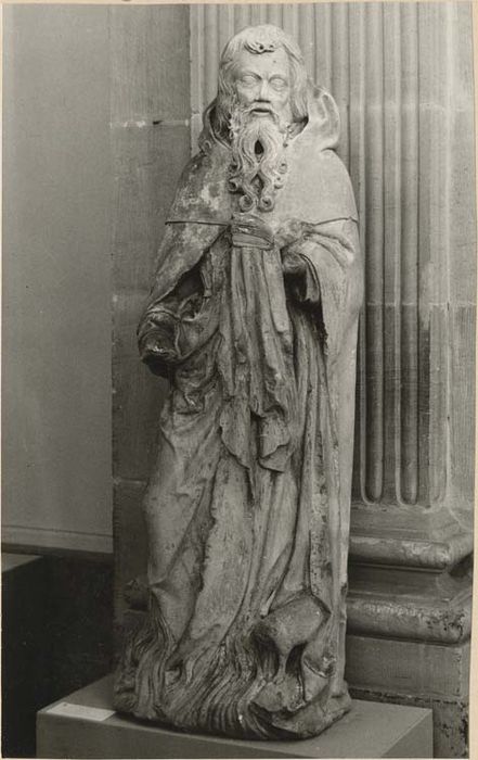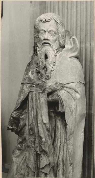 Oeuvre exécutée vers 1400. Un parallèle avec la tête de la statue du vieillard Siméon au grand portail de Reims est assez révélateur.