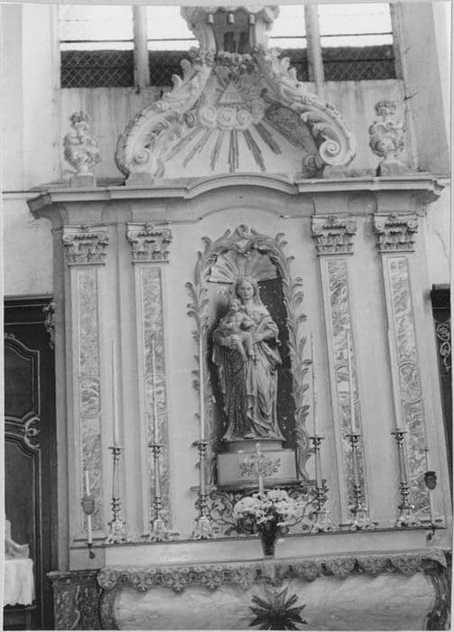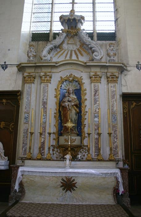Retable et statue de la Vierge.
