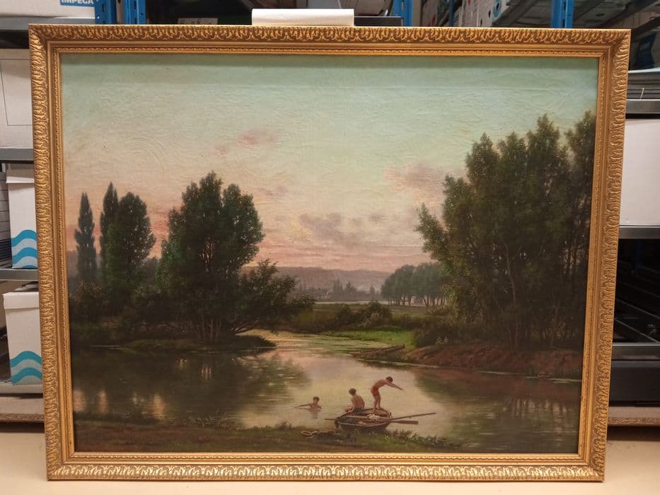 tableau et cadre : Etang et barque (Baignade)