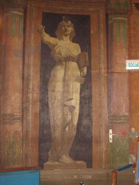 POP | Plateforme ouverte du patrimoinepanneaux de toiles marouflées représentant des figures allégoriques : le Courage, la Lumière, la Vérité, la Sagesse, la Puissance, l'Amour, la Liberté, l'Obéissance, la Charité, la Prudence, la Force, la Justice, l'Espérance, la Concorde, l'Egalité, la Volonté ainsi qu'une représentation du couple pharaonique