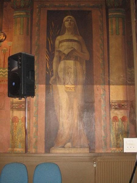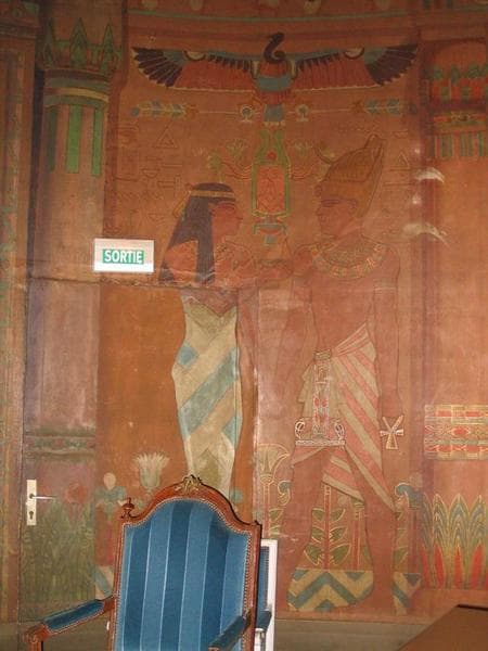 panneaux de toiles marouflées représentant des figures allégoriques : le Courage, la Lumière, la Vérité, la Sagesse, la Puissance, l'Amour, la Liberté, l'Obéissance, la Charité, la Prudence, la Force, la Justice, l'Espérance, la Concorde, l'Egalité, la Volonté ainsi qu'une représentation du couple pharaonique