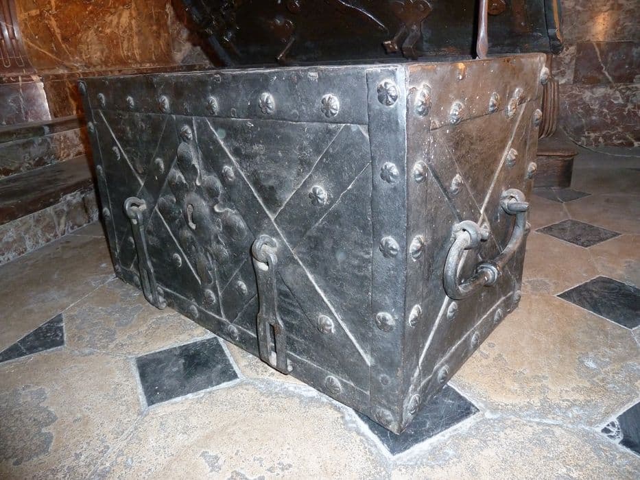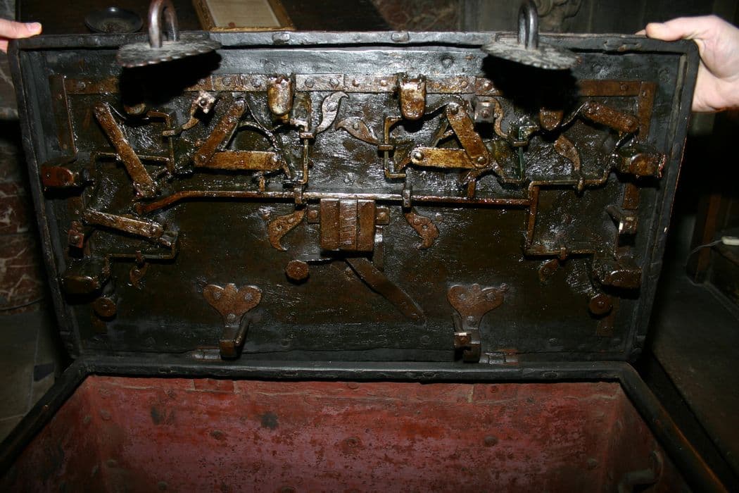 Coffre à serrure, bois