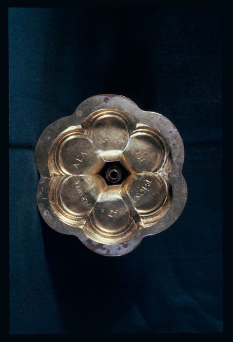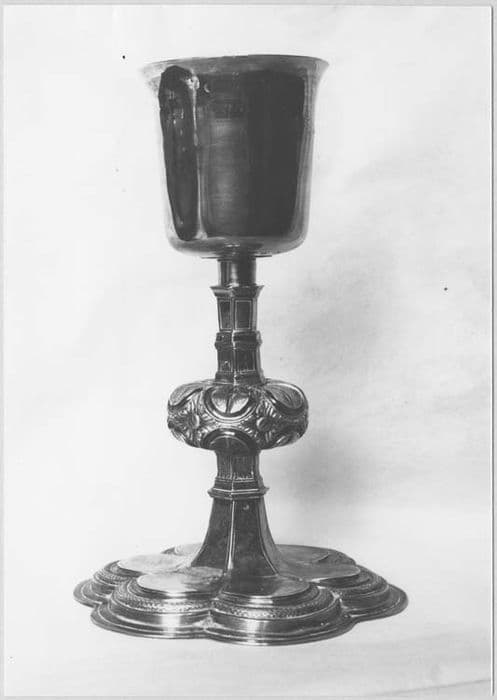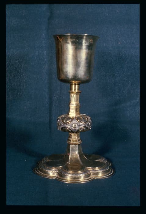 Le pied en cuivre est recouvert de plaques d'argent. La coupe est en argent doré.
